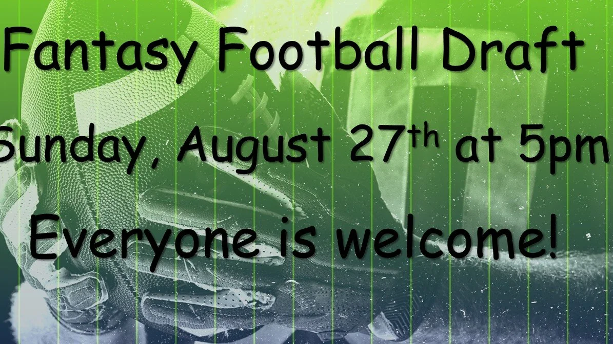 Fantasy Football Draft Sunday, August 27, 2023 5:00 PM 7:00 PM White House First Baptist Church (map) Google Calendar ICS